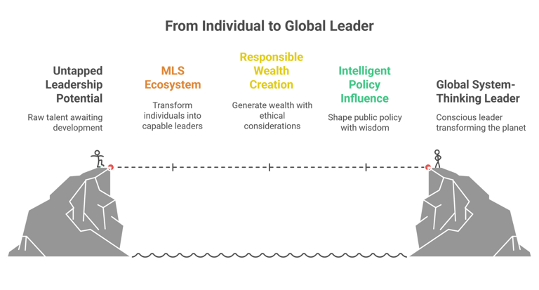 The Master Leader System (MLS) is a next-generation leadership ecosystem designed to transform individuals into leaders who can create wealth responsibly, influence public policy intelligently, and contribute to a sustainable planet.