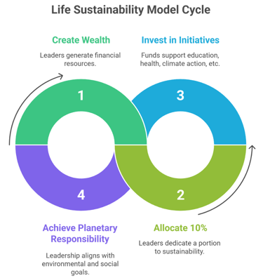 Every MLS participant follows the Life Sustainability Model, committing 10% of value created toward sustainable planet initiatives such as education, health, climate action, and social well-being—ensuring leadership success aligns with planetary responsibility.